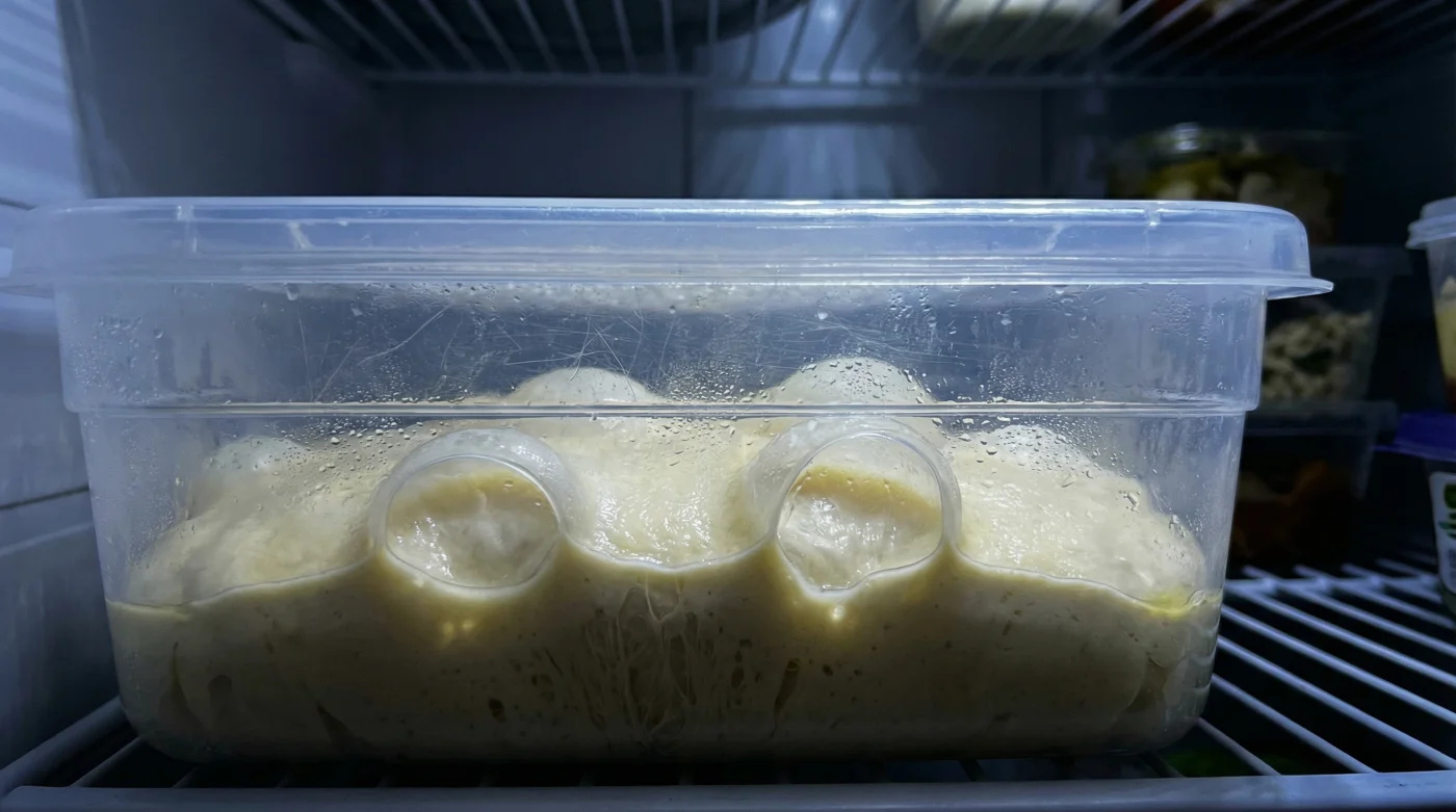 Forme deine Teiglinge direkt nach dem Kneten. Lege sie in eine geölte Form mit einem luftdichten Deckel und stelle sie tief in den Kühlschrank. Vermeide das Gemüsefach oder die Tür, da hier die Temperaturen beim Öffnen zu stark schwanken. Konstante Kälte ist das Fundament für ein gleichmäßiges Glutennetzwerk.