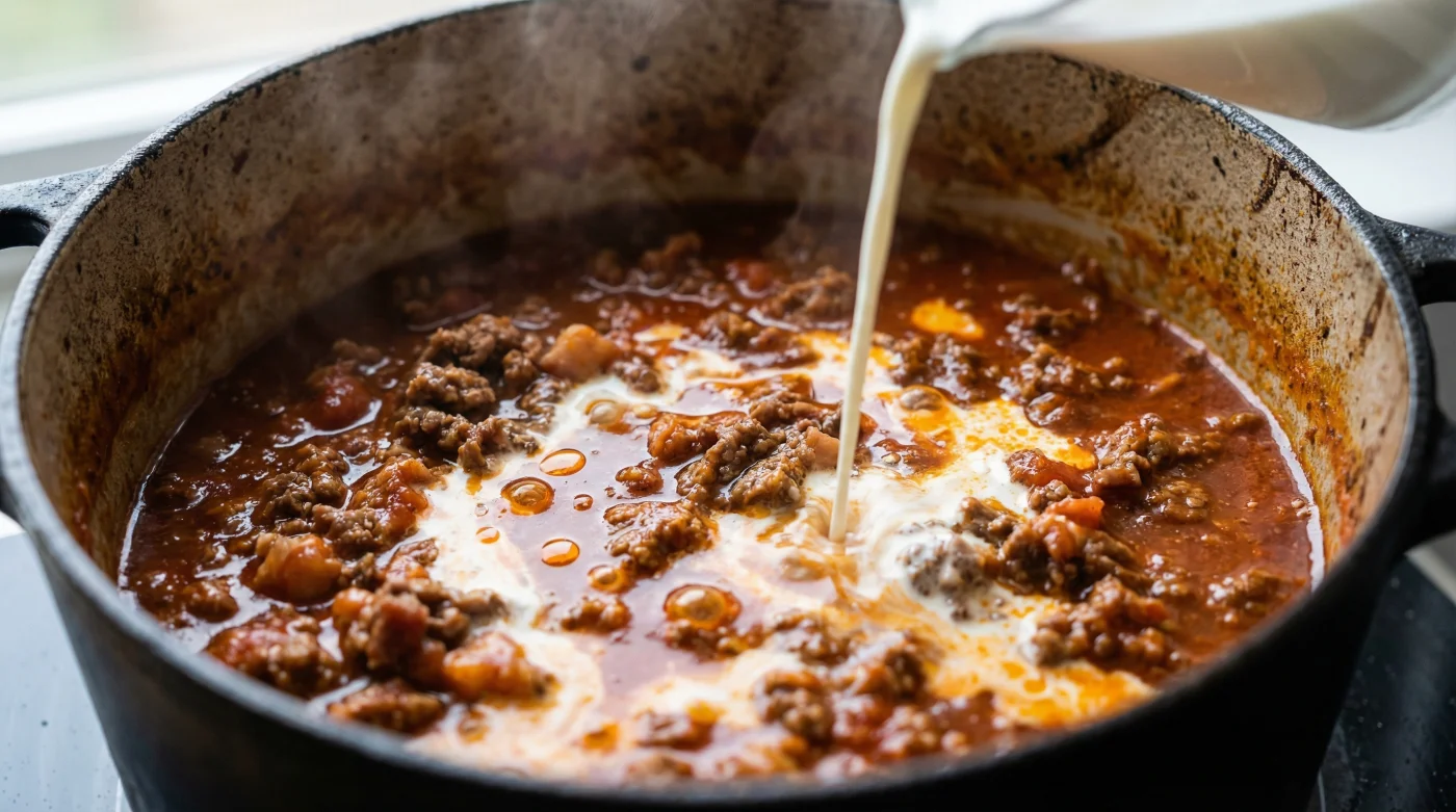 Es reicht nicht, am Ende einen Schuss Milch in den Topf zu rühren, um die Farbe aufzuhellen. Das ist bloße Kosmetik. Die eigentliche Arbeit passiert früher. Sobald dein Soffritto aus Karotten, Sellerie und Zwiebeln glasig ist und das Hackfleisch krümelig gebraten wurde, beginnt der entscheidende Schritt. Du gießt etwa ein Glas zimmerwarme Vollmilch an. Nun heißt es warten. Du rührst geduldig, bis die Flüssigkeit vollständig verkocht ist und nur noch das Fett am Topfboden leise knistert.